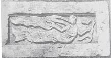 “飞天”图砖雕:长29,宽14,厚4.5厘米,飞天手执莲枝,衣带飘逸,面部丰满。雕刻精细,刀法娴熟,人物栩栩如生,尤为精美。(图三)。